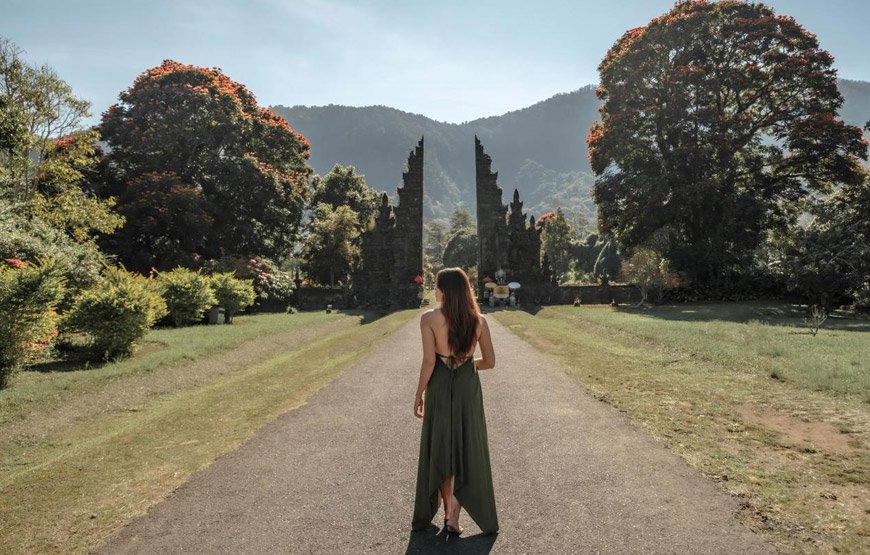 Than we will offer you to view the splendor of the Danau Beratan Temple, which appears floating when lake water is high. Among the well-known Bali icons is this one. And then a lovely gate called Bali Handara Gate with a lush mountain backdrop.